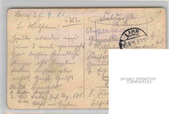 42831121 alte Postkarte Lahr Schwarzwald Schillerstrasse Kirche postalisch gelaufen Feldpost Erhaltung siehe scans [WerneD78] KatCode: 11110008317065