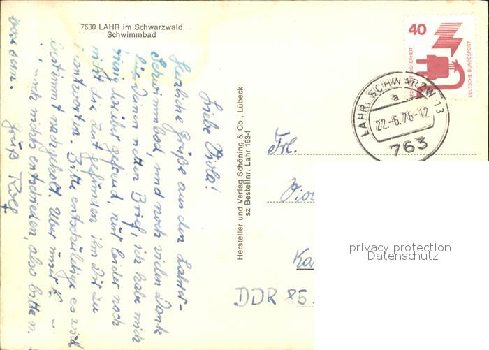 72524079 alte Postkarte Lahr Schwarzwald Schwimmbad postalisch gelaufen Erhaltung siehe scans KatCode: 11110008317065