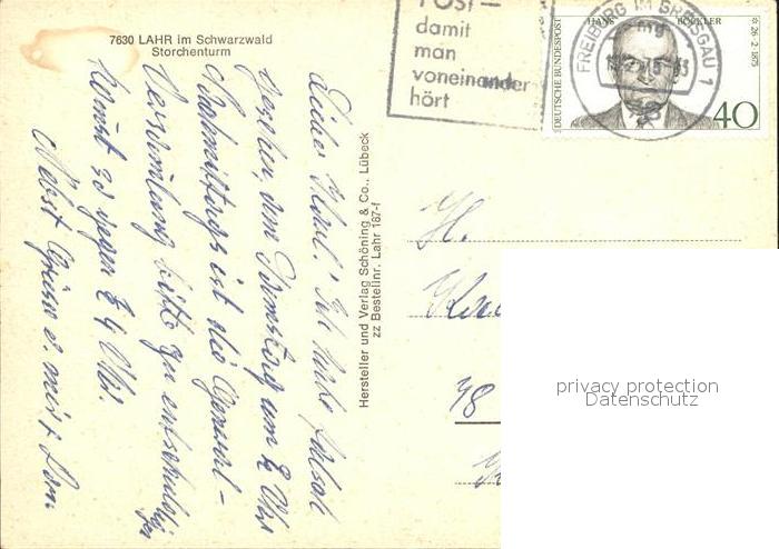 71830902 alte Postkarte Lahr Schwarzwald Storchenturm postalisch gelaufen Erhaltung siehe scans KatCode: 11110008317065
