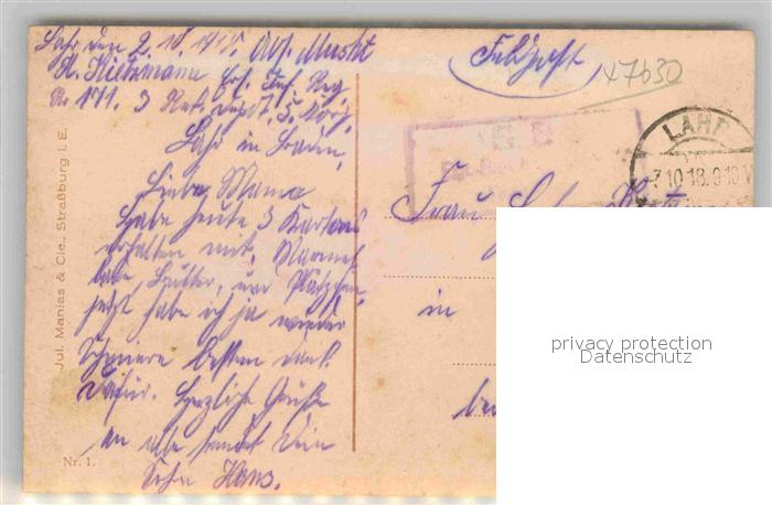 42830353 alte Postkarte Lahr Schwarzwald Villenviertel am Altvater postalisch gelaufen Feldpost Erhaltung siehe scans [WerneD78] KatCode: 11110008317065