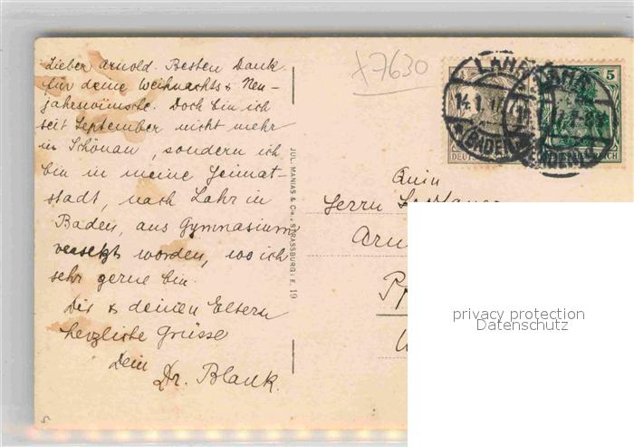 42830434 alte Postkarte Lahr Schwarzwald Villenviertel am Altvater postalisch gelaufen Erhaltung siehe scans [WerneD78] KatCode: 11110008317065