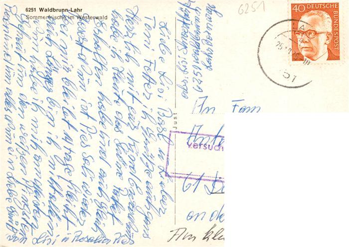 73936499 alte Postkarte Lahr Westerwald Waldbrunn Panorama Blockhaus Hinweisschild Waldpartie postalisch gelaufen Erhaltung siehe scans [FriedD77] KatCode: 11110006533016