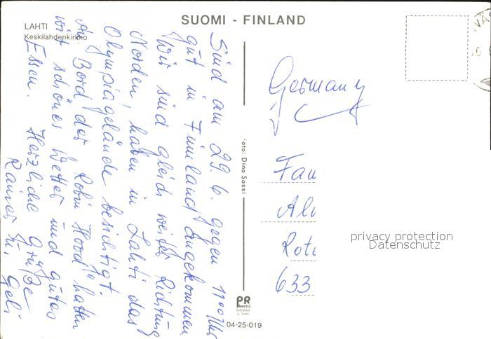 old postcard Lahti Keskilahdenkirche postalisch gelaufen Erhaltung siehe scans
