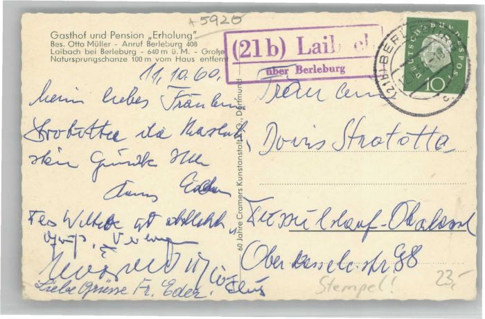 40693836 Laibach Bad Berleburg Gasthof Pension Erholung KatCode 11110005970004