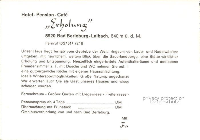 72022529 Laibach Bad Berleburg Hote Pension Cafe Erholung postalisch nicht gelaufen Werbekarte (keine Postkarte) Erhaltung siehe scans KatCode: 11110005970004