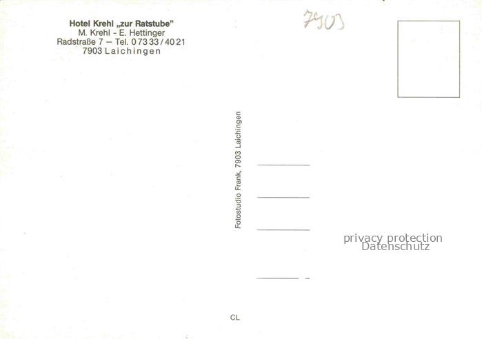 74049849 Laichingen Alb-Donau-Kreis BW Hotel Krehl zur Ratstube postalisch nicht gelaufen Erhaltung siehe scans [FriedD77] KatCode: 11110008425071