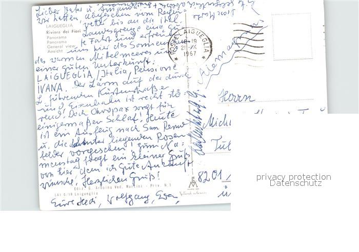 old postcard Laigueglia Blumenriviera Panorama postalisch gelaufen Erhaltung siehe scans