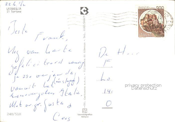 old postcard Laigueglia Hafen Il Torione postalisch gelaufen Erhaltung siehe scans