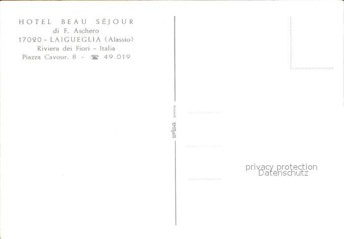 Laigueglia Hotel Beau Sejour Strand postalisch nicht gelaufen Erhaltung siehe scans