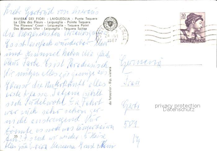 old postcard Laigueglia Punta Taquara postalisch gelaufen Erhaltung siehe scans