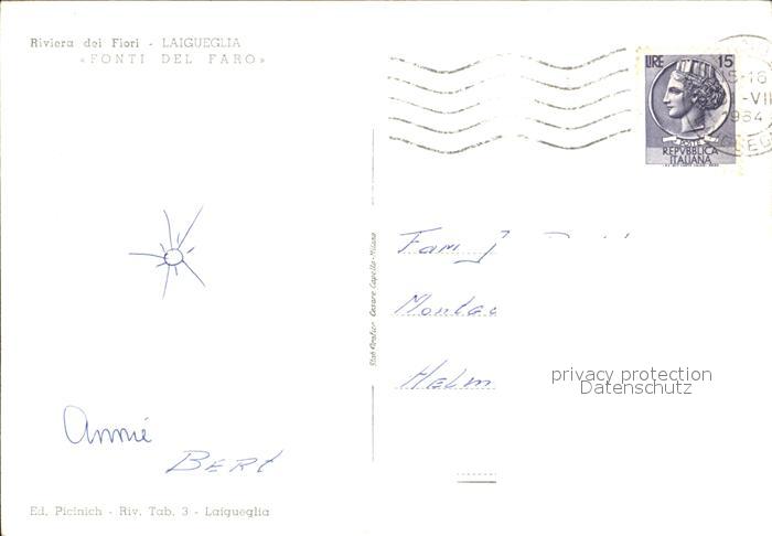 old postcard Laigueglia Riviera dei Fiori Fonti del Faro postalisch gelaufen Erhaltung siehe scans