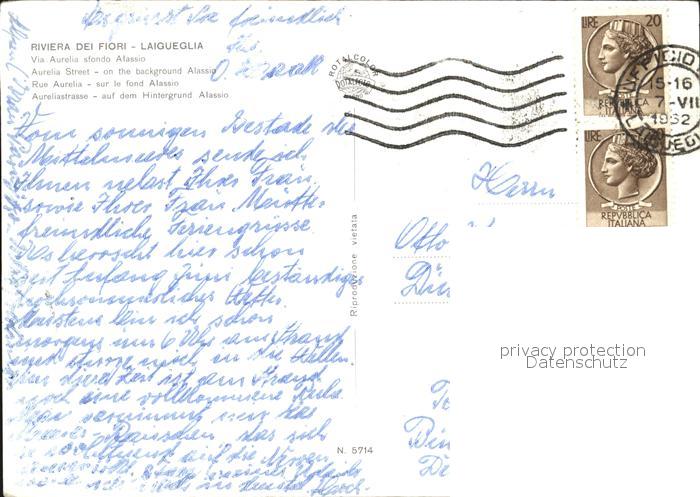 old postcard Laigueglia Via Aurelia sfondo Alassio Spiaggia Riviera dei Fiori postalisch gelaufen Erhaltung siehe scans