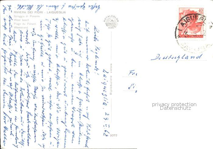 old postcard Laigueglia Weststrand postalisch gelaufen Erhaltung siehe scans