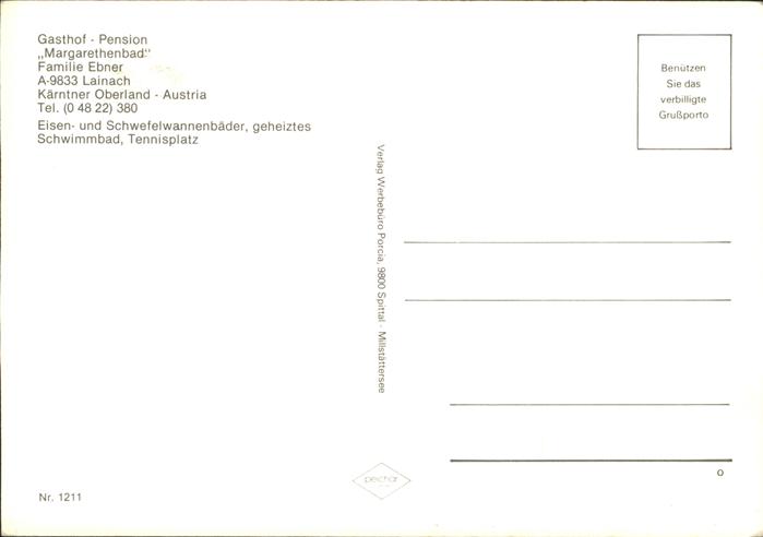 71431652 Lainach Kaernten Gasthof Pension Margarethenbad postalisch nicht gelaufen Erhaltung siehe scans KatCode: 11390212020631
