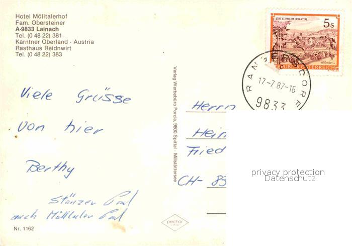 72839537 alte Postkarte Lainach Kaernten Hotel Moelltalerhof postalisch gelaufen Erhaltung siehe scans [AndreD76] KatCode: 11390212020631