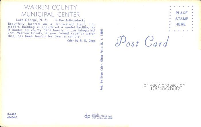 72296593 Lake George New York Warren County Municipal Center postalisch nicht gelaufen Erhaltung siehe scans KatCode: 14140340000000