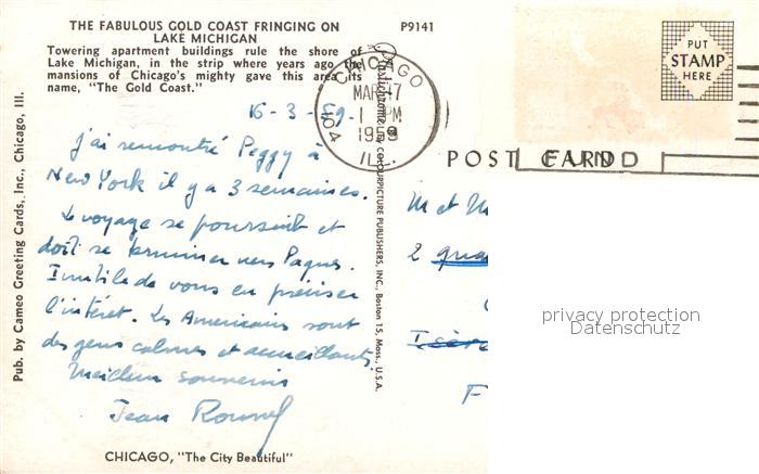 72944248 old postcard Lake Michigan Gold Coast Fringing postalisch gelaufen Erhaltung siehe scans [WerneD78] KatCode: 14140240000000