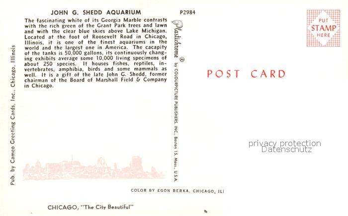 73277517 Lake Michigan John G. Shedd Aquarium postalisch nicht gelaufen Erhaltung siehe scans [LiesaD40] KatCode: 14140240000000