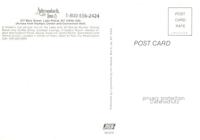 72950480 Lake Placid New York Adirondack Inn postalisch nicht gelaufen Erhaltung siehe scans [NatalD47] KatCode: 14140340000000