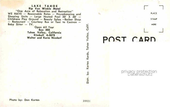 72614755 Lake Tahoe California Rip Van Winkle Motel postalisch nicht gelaufen Erhaltung siehe scans [WerneD78] KatCode: 14140050000000