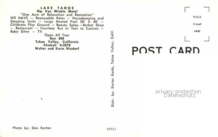 72614745 Lake Tahoe California Rip Van Winkle Motel postalisch nicht gelaufen Erhaltung siehe scans [WerneD78] KatCode: 14140050000000