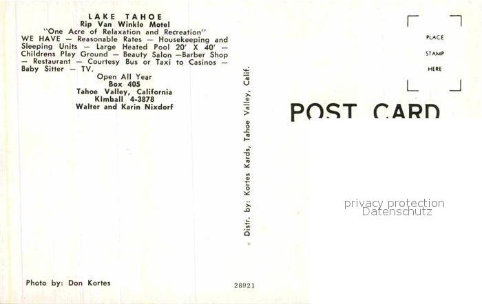 12869875 Lake Tahoe California Rip Van Winkle Motel postalisch nicht gelaufen Erhaltung siehe scans [PaolaD17] KatCode: 14140050000000