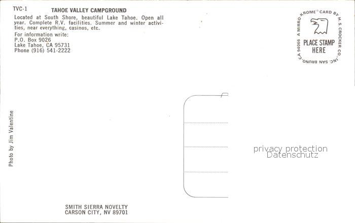 72091437 Lake Tahoe California Tahoe Vallee Campground postalisch nicht gelaufen Erhaltung siehe scans KatCode: 14140050000000