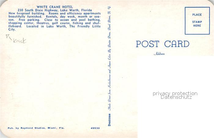 73333544 Lake Worth White Crane Hotel postalisch nicht gelaufen Erhaltung siehe scans [FriedD77] KatCode: 14140110000000