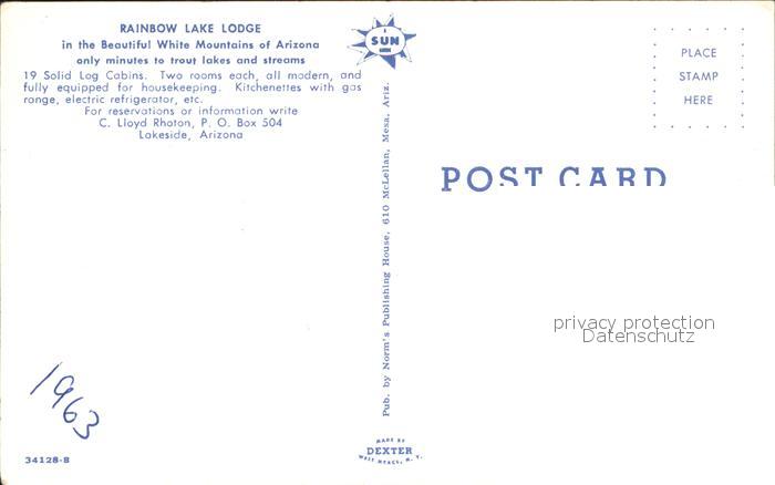 72134183 Lakeside Arizona Rainbow Lake Lodge postalisch nicht gelaufen Erhaltung siehe scans KatCode: 14140030000000