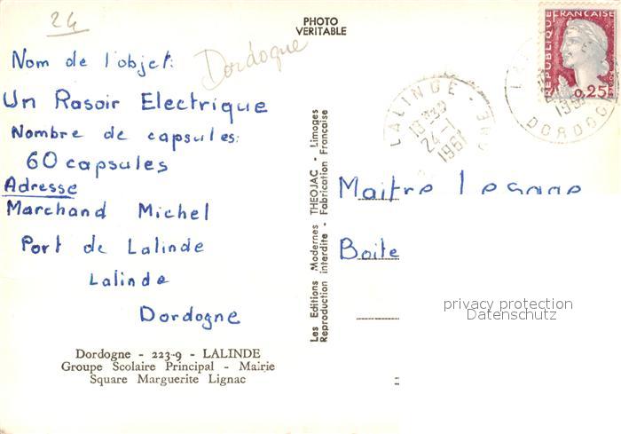 13593898 Lalinde Groupe Scolaire Principal Mairie Square Marguerite Lignac postalisch gelaufen Erhaltung siehe scans [WerneD78] carte postale Wern Katcode 11170024124223