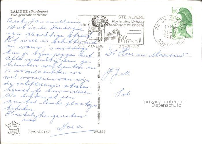 12920918 carte postale Lalinde Vue generale aerienne Pont Eglise postalisch gelaufen Erhaltung siehe scans [FriedD46] KatCode: 11170024124223