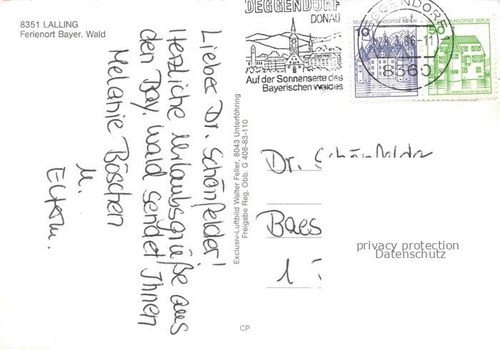 74149505 alte Postkarte Lalling Bayerischer Wald Deggendorf Niederbayern Bayern Fliegeraufnahme postalisch gelaufen Erhaltung siehe scans [WerneD78] KatCode: 11110009271130