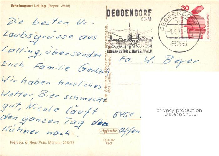 73056859 alte Postkarte Lalling Niederbayern Fliegeraufnahme postalisch gelaufen Erhaltung siehe scans [WerneD78] KatCode: 11110009271130