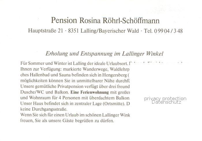 73653042 Lalling Niederbayern Pension Rosina Roehrl Schoeffmann postalisch nicht gelaufen Werbekarte (keine Postkarte) Erhaltung siehe scans [WerneD78] KatCode: 11110009271130