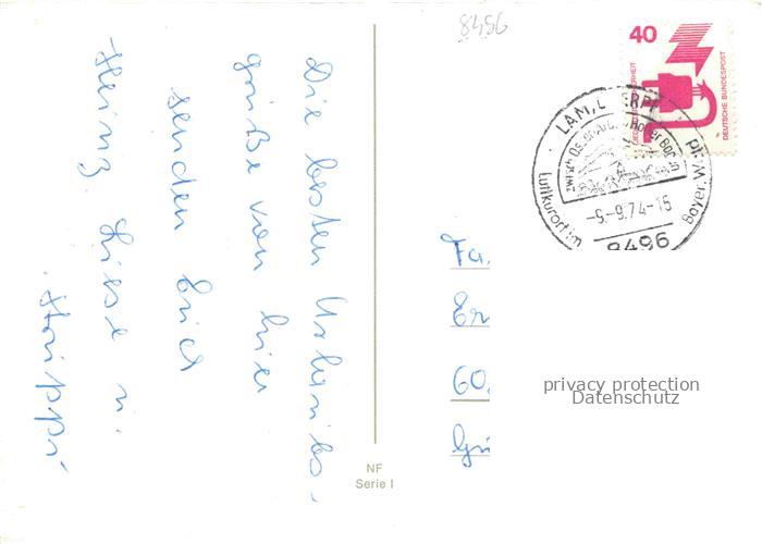 74049198 alte Postkarte Lam Oberpfalz Ansicht mit Totenbretter und Hohenbogen Waldpartie Osser Arbersee Maia-Hilf Kirche postalisch gelaufen Erhaltung siehe scans [FriedD77] KatCode: 11110009372138