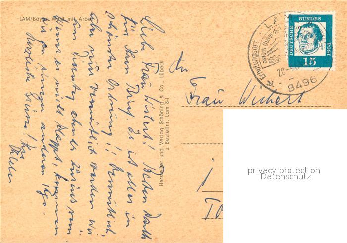 73625883 alte Postkarte Lam Oberpfalz Bayr Wald mit Arber postalisch gelaufen Erhaltung siehe scans [FriedD77] KatCode: 11110009372138