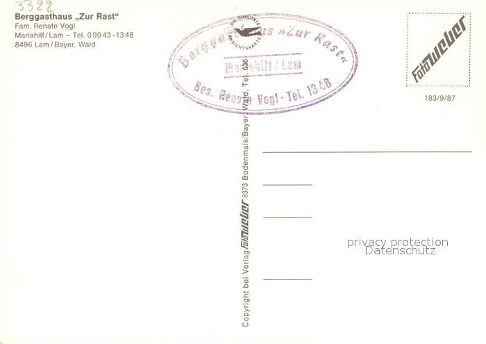 73204320 Lam Oberpfalz Berggasthaus Zur Rast Kapelle Bayerischer Wald postalisch nicht gelaufen Erhaltung siehe scans [FriedD77] KatCode: 11110009372138
