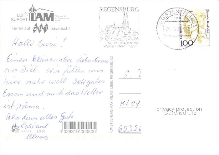 72452660 alte Postkarte Lam Oberpfalz Biergarten Schwimmbad postalisch gelaufen Erhaltung siehe scans KatCode: 11110009372138