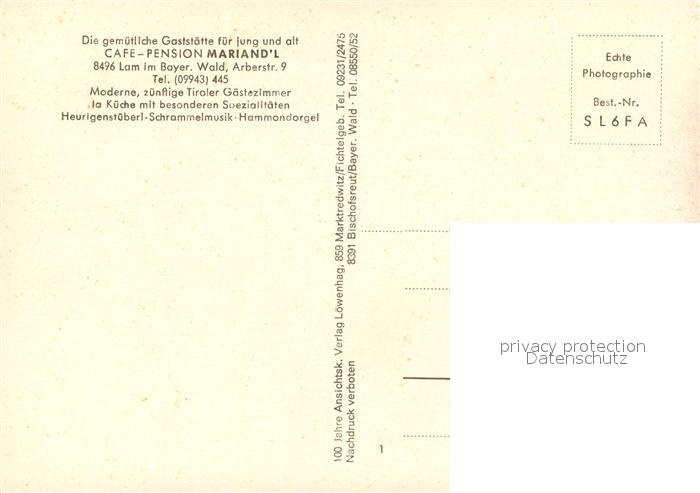 73203487 Lam Oberpfalz Cafe Pension Mariandl Gaststaette postalisch nicht gelaufen Erhaltung siehe scans [FriedD77] KatCode: 11110009372138