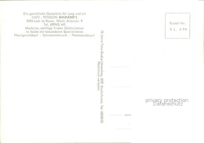 72325744 Lam Oberpfalz Cafe Pension Mariand`l postalisch nicht gelaufen Erhaltung siehe scans KatCode: 11110009372138