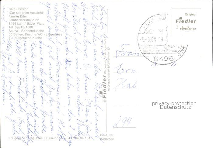 72238472 alte Postkarte Lam Oberpfalz Cafe Pension Zur schoenen Aussicht postalisch gelaufen Erhaltung siehe scans KatCode: 11110009372138