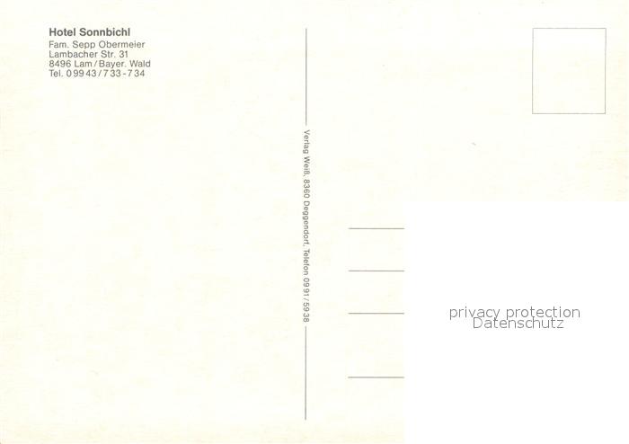 73615865 Lam Oberpfalz Hotel Sonnbichl postalisch nicht gelaufen Erhaltung siehe scans [WerneD78] KatCode: 11110009372138