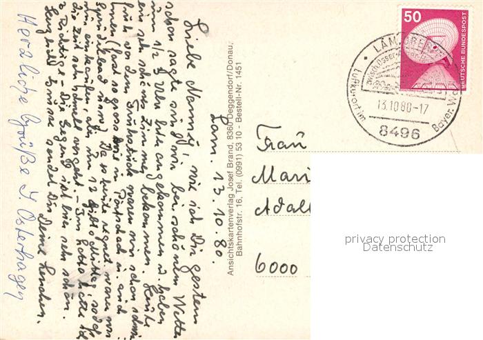 73257849 alte Postkarte Lam Oberpfalz Osser Marktplatz Panorama postalisch gelaufen Erhaltung siehe scans [WerneD78] KatCode: 11110009372138