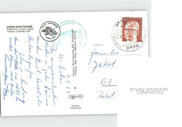 72015490 alte Postkarte Lam Oberpfalz Osser Schutzhaus Fliegeraufnahme postalisch gelaufen Erhaltung siehe scans KatCode: 11110009372138