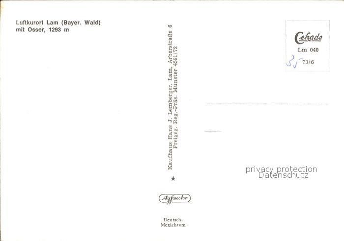 72398003 Lam Oberpfalz Osser postalisch nicht gelaufen Erhaltung siehe scans KatCode: 11110009372138