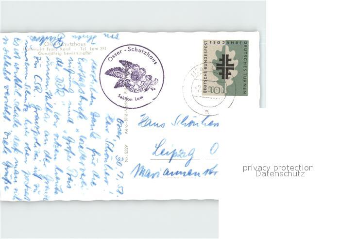 72036540 alte Postkarte Lam Oberpfalz Osserschutzhaus postalisch gelaufen Erhaltung siehe scans KatCode: 11110009372138