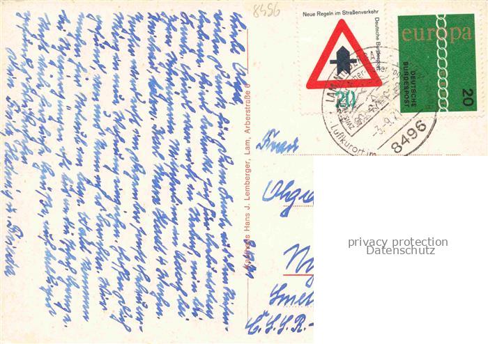 74049200 alte Postkarte Lam Oberpfalz Panorama Blick gegen Arber Osser Kirche Marktplatz postalisch gelaufen Erhaltung siehe scans [FriedD77] KatCode: 11110009372138