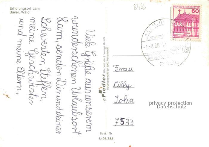 74049192 alte Postkarte Lam Oberpfalz Panorama Erholungsort Freibad Pferdewagen Ortsansicht mit Kirche postalisch gelaufen Erhaltung siehe scans [FriedD77] KatCode: 11110009372138