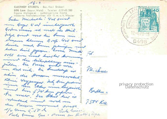 74049005 alte Postkarte Lam Oberpfalz Panorama Ortsansichten Gasthof Stoeberl Gaststube postalisch gelaufen Erhaltung siehe scans [FriedD77] KatCode: 11110009372138
