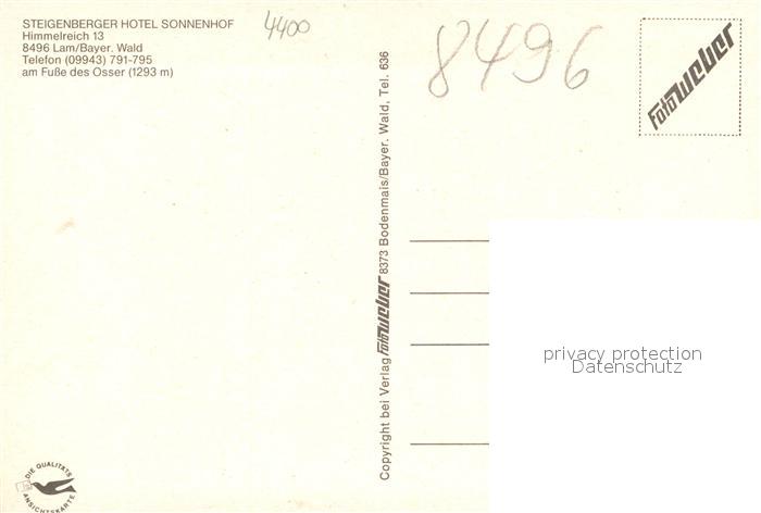 73544754 Lam Oberpfalz Steigenberger Hotel Sonnenhof postalisch nicht gelaufen Erhaltung siehe scans [WerneD78] KatCode: 11110009372138